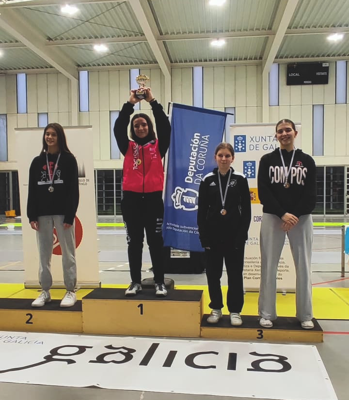 En categoria feminina, Vera Pereiro acadou a victoria nunha gran xornada de esgrima, onde puxo sobre a pista una abanico de accións de gran nivel técnico e estratéxico, mantendo en todo momento unha concentración fundamental para acadar unha consistencia que a fixo xusta gañadora do torneo. Lucila Antivero, M15 que retornou ás pistas tras uns meses fóra delas, acadou un gran 5ª posto. Stefany López rematou 6ª e Laura Mora 10ª, completando a nosa participación feminina M17.